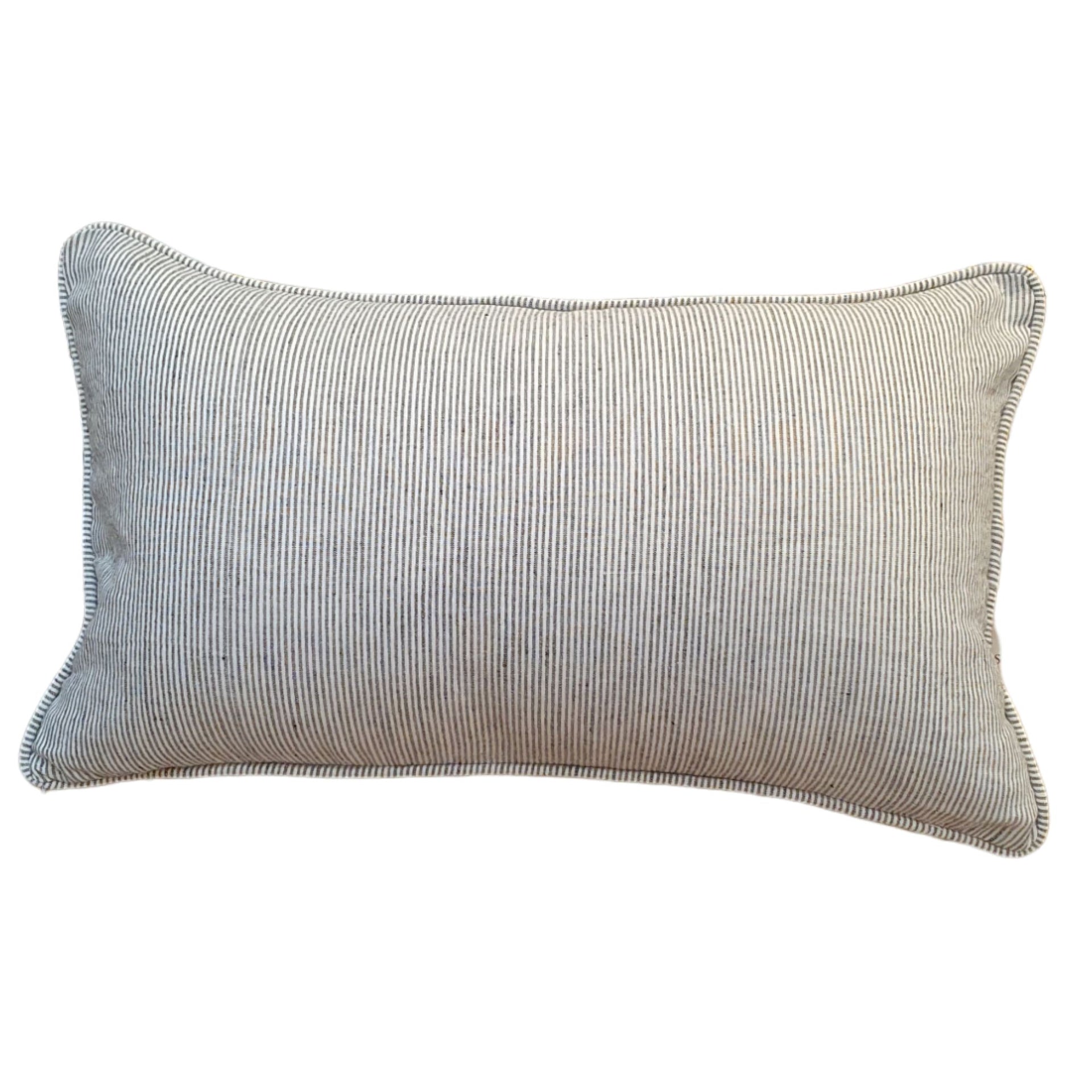 Charcoal Pinstripes Linen Lumbar Cushion Cover | Charcoal Lumbar Pillow 30x50 cm